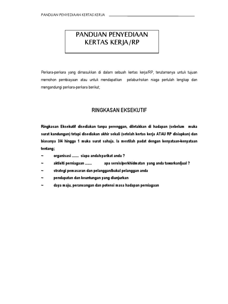 Panduan Penyediaan Kertas Kerja Perniagaan Pdf